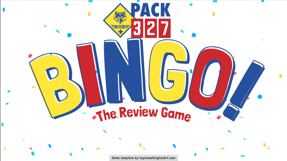 October 24, 2025 Cubmaster 0 Comments Links to game generators for Cub Scout meetings https://myfreebingocards.com/bingo-card-generator/edit/aw7fs https://jeopardylabs.com/play/cub-scout-quiz-47 https://triviamaker.com/trivia/20210205161255970562358 https://taysteachingtoolkit.com/collection/google-slides-games Previous Pack Meeting Plans Next Printable Nutrition Board Game for Cub Scouts Den Meetings